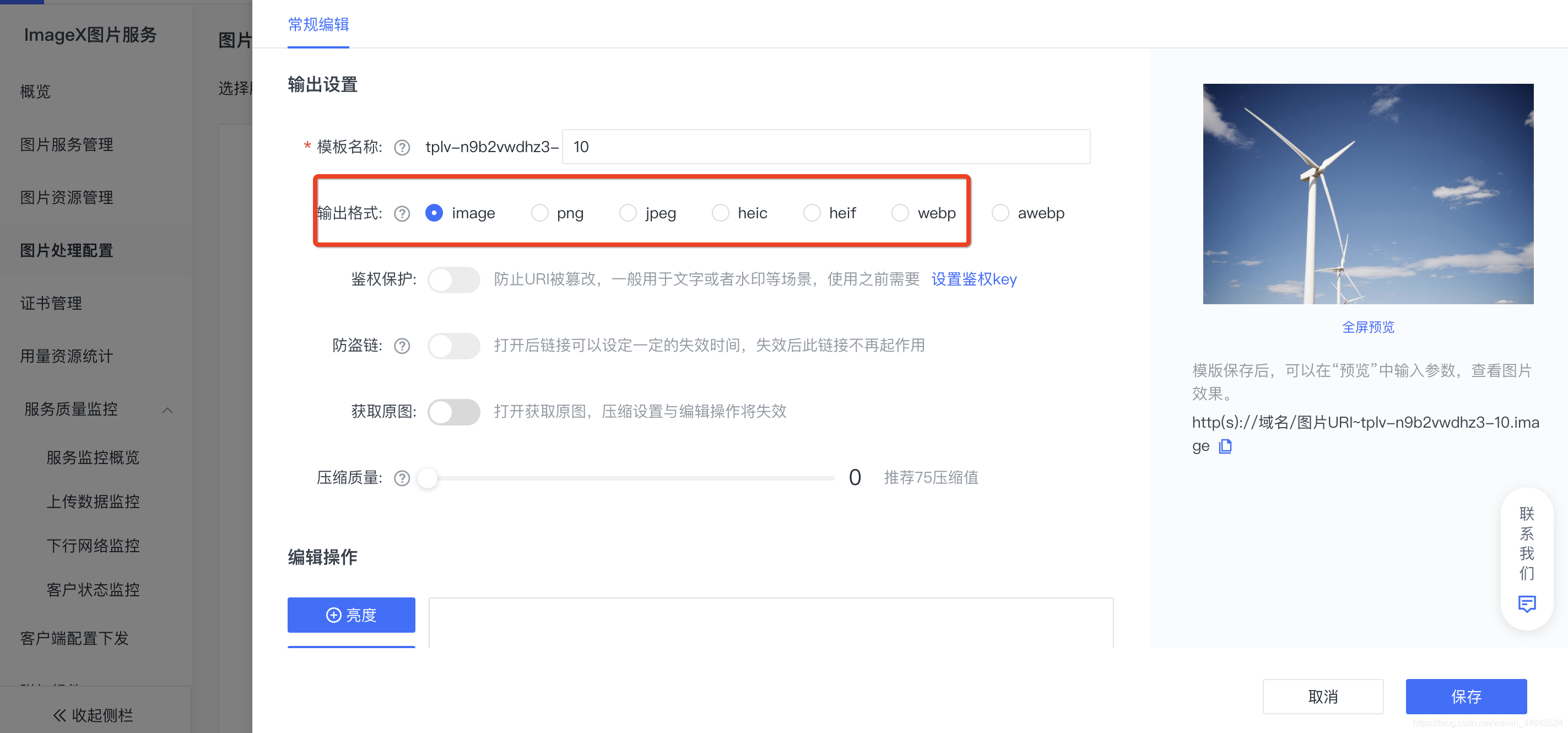 也就是通过三段方式访问的,图片地址访问规则: http(s)://域名/图片URI~模板配置 ,我想深入研究下,这个模板到底是干嘛的?原来他的处理效果是这样来选择的: